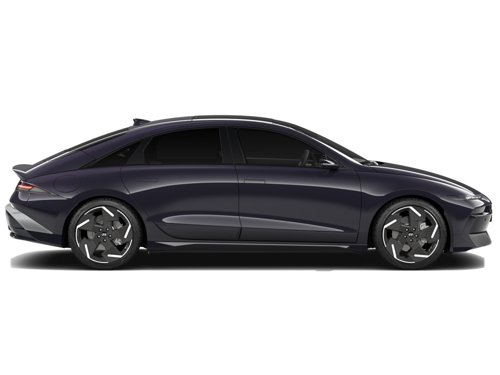 Uue IONIQ 6 kõrgemale tõstetud kapott ja pikemaks venitatud kere kombinatsioonis esiosa hainina-disainiga muudavad auto profiili eriti sihvakaks. Must kontrastvärv kere alaosal ulatub uste alaservani, rõhutades IONIQ 6 voolujoonelisust.
