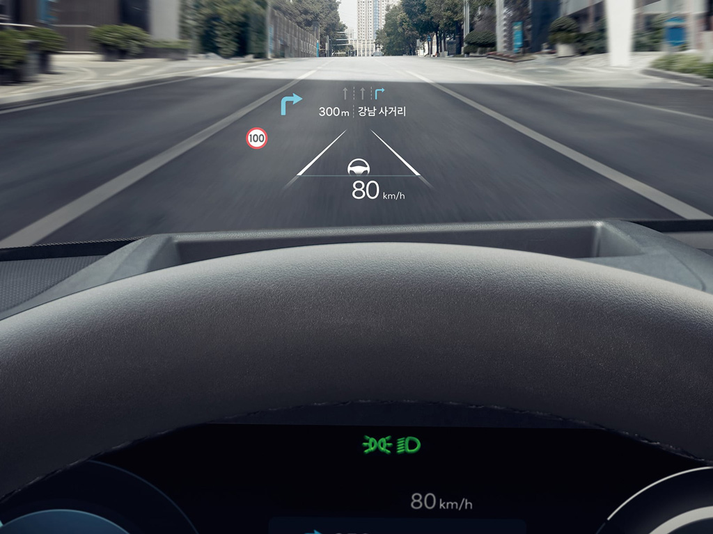 Проекция приборной панели на лобовое стекло обеспечивает безопасное передвижение по дорогам, отображая виртуальную информацию, например, указания или предупреждения, непосредственно на области обзора дороги.