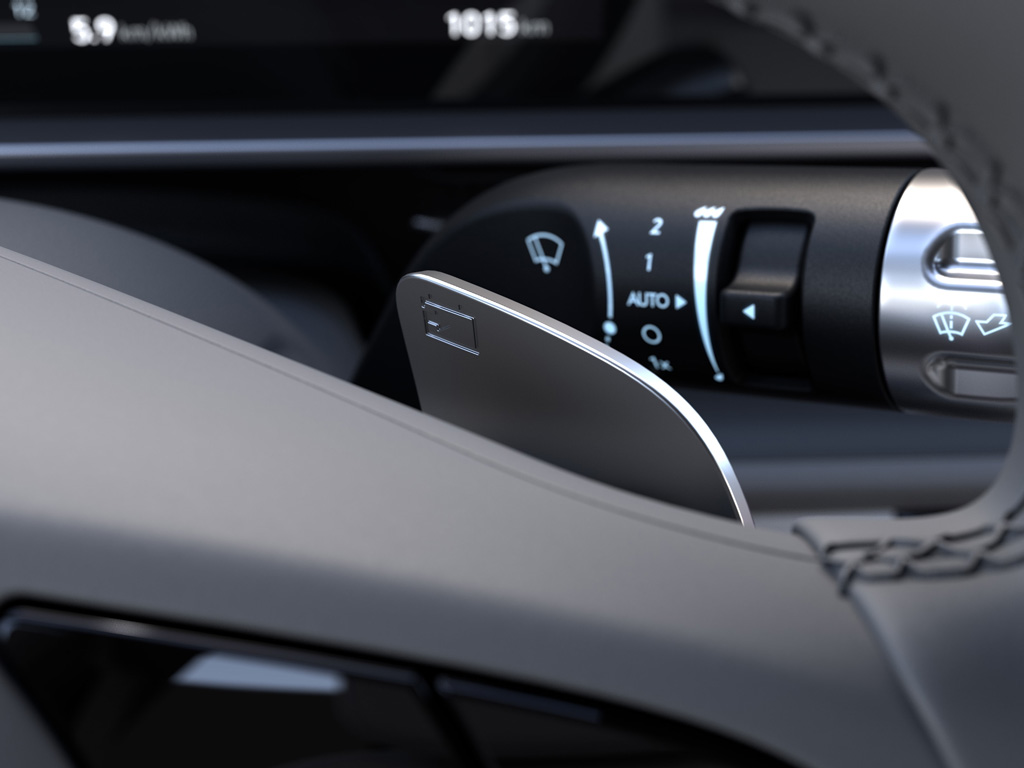 Регулируйте уровень рекуперативного торможения с помощью подрулевых переключателей, установленных на рулевом колесе. Чем выше уровень, тем больше автомобиль замедляется и заряжает батарею, когда вы убираете ногу с педали акселератора.
