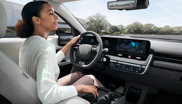 Цифровые боковые зеркала IONIQ 5 обеспечивают более широкий угол обзора по сравнению с традиционными зеркалами. При активации цифрового центрального зеркала камера проецирует изображение на зеркало в режиме реального времени.