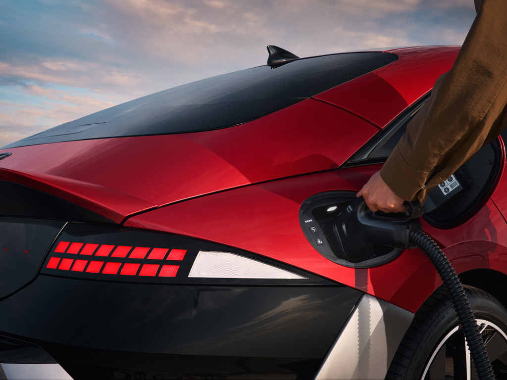 IONIQ 6 оснащен удлиненным спойлером в виде утиного хвоста, который сохраняет аэродинамические характеристики и придает автомобилю более плавный и утонченный силуэт.